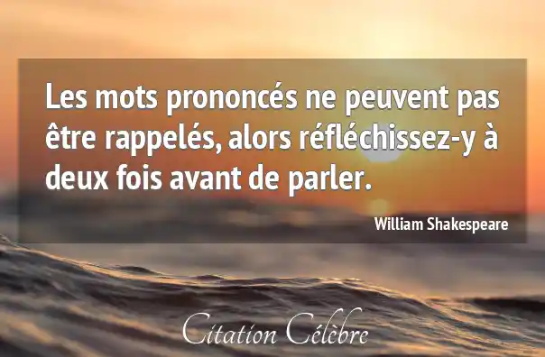 Les mots prononcés ne peuvent pas être rappelés, alors réfléchissez-y à deux fois avant de parler.