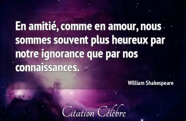 En amitié, comme en amour, nous sommes souvent plus heureux par notre ignorance que par nos connaissances.