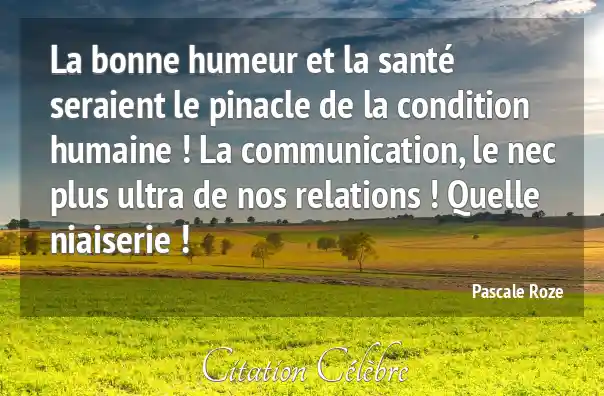 La bonne humeur et la santé seraient le pinacle de la condition humaine ! La communication, le nec plus ultra de nos relations ! Quelle niaiserie !