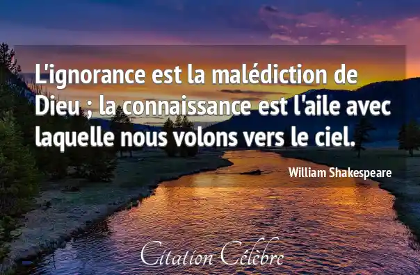 L'ignorance est la malédiction de Dieu ; la connaissance est l'aile avec laquelle nous volons vers le ciel.