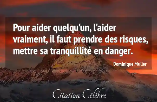 Pour aider quelqu'un, l'aider vraiment, il faut prendre des risques, mettre sa tranquillité en danger.