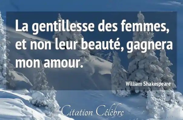 La gentillesse des femmes, et non leur beauté, gagnera mon amour.