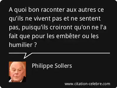 A quoi bon raconter aux autres ce qu'ils ne vivent pas et ne sentent pas, puisqu'ils croiront qu'on ne l'a fait que pour les embêter ou les humilier ?