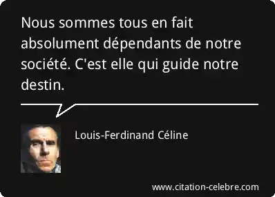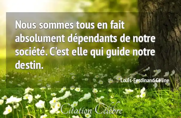 Nous sommes tous en fait absolument dépendants de notre société. C'est elle qui guide notre destin.
