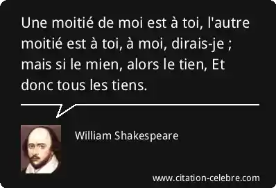 Une moitié de moi est à toi, l'autre moitié est à toi, à moi, dirais-je ; mais si le mien, alors le tien, Et donc tous les tiens.