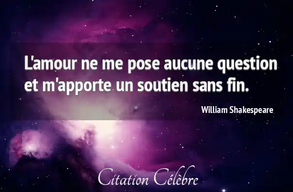 L'amour ne me pose aucune question et m'apporte un soutien sans fin.