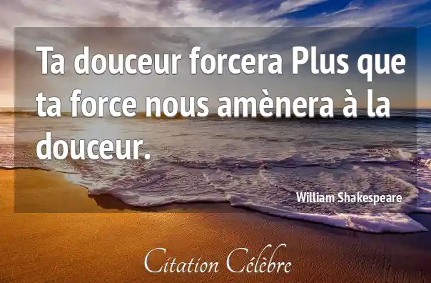 Ta douceur forcera Plus que ta force nous amènera à la douceur.