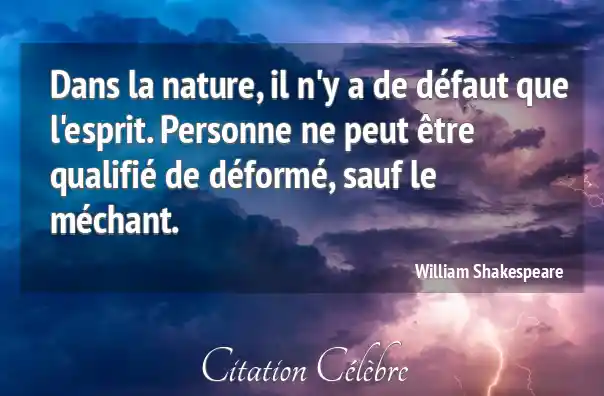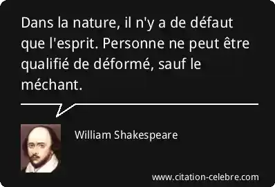 Dans la nature, il n'y a de défaut que l'esprit. Personne ne peut être qualifié de déformé, sauf le méchant.