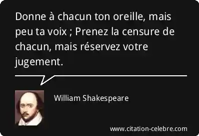 Donne à chacun ton oreille, mais peu ta voix ; Prenez la censure de chacun, mais réservez votre jugement.
