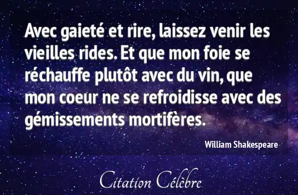 Avec gaieté et rire, laissez venir les vieilles rides. Et que mon foie se réchauffe plutôt avec du vin, que mon coeur ne se refroidisse avec des gémissements mortifères.
