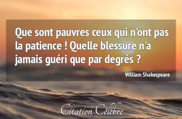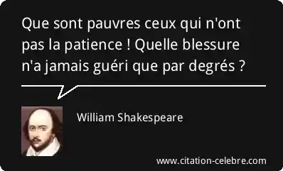Que sont pauvres ceux qui n'ont pas la patience ! Quelle blessure n'a jamais guéri que par degrés ?