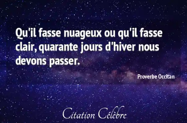 Qu'il fasse nuageux ou qu'il fasse clair, quarante jours d'hiver nous devons passer.