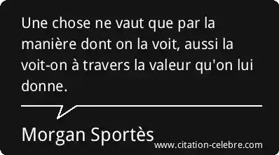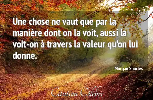 Une chose ne vaut que par la manière dont on la voit, aussi la voit-on à travers la valeur qu'on lui donne.