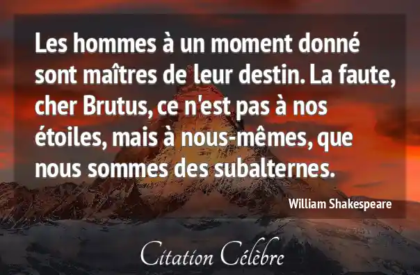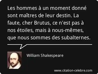 Les hommes à un moment donné sont maîtres de leur destin. La faute, cher Brutus, ce n'est pas à nos étoiles, mais à nous-mêmes, que nous sommes des subalternes.