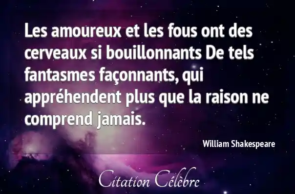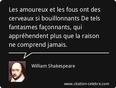 Les amoureux et les fous ont des cerveaux si bouillonnants De tels fantasmes façonnants, qui appréhendent plus que la raison ne comprend jamais.
