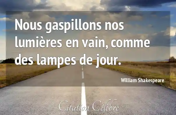 Citation William Shakespeare jour : Nous gaspillons nos lumières en vain, comme des lampes de...
