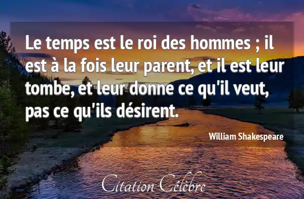 Le temps est le roi des hommes ; il est à la fois leur parent, et il est leur tombe, et leur donne ce qu'il veut, pas ce qu'ils désirent.