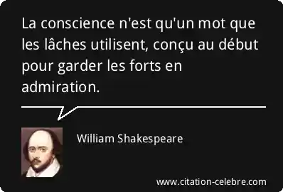 La conscience n'est qu'un mot que les lâches utilisent, conçu au début pour garder les forts en admiration.