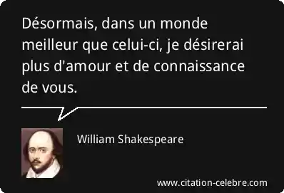 Désormais, dans un monde meilleur que celui-ci, je désirerai plus d'amour et de connaissance de vous.