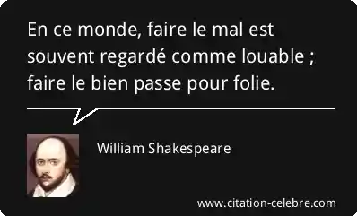 En ce monde, faire le mal est souvent regardé comme louable ; faire le bien passe pour folie.