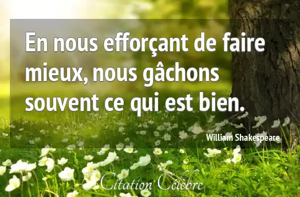 En nous efforçant de faire mieux, nous gâchons souvent ce qui est bien.