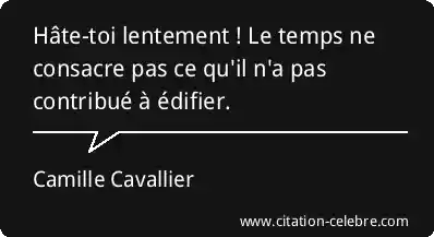 Hâte-toi lentement ! Le temps ne consacre pas ce qu'il n'a pas contribué à édifier.