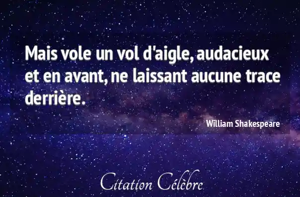 Mais vole un vol d'aigle, audacieux et en avant, ne laissant aucune trace derrière.