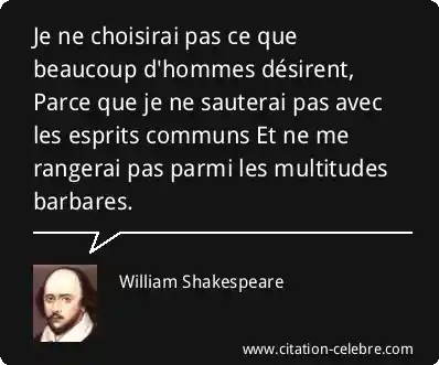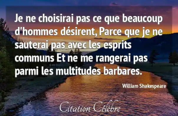 Je ne choisirai pas ce que beaucoup d'hommes désirent, Parce que je ne sauterai pas avec les esprits communs Et ne me rangerai pas parmi les multitudes barbares.