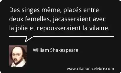 Des singes même, placés entre deux femelles, jacasseraient avec la jolie et repousseraient la vilaine.