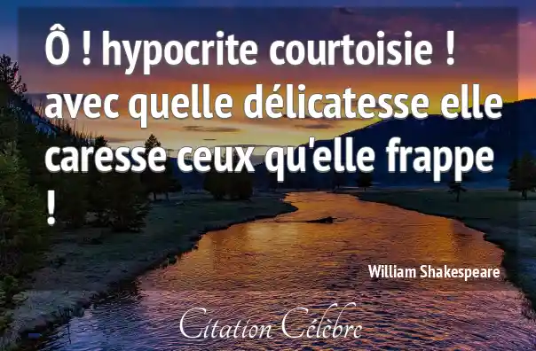 Ô ! hypocrite courtoisie ! avec quelle délicatesse elle caresse ceux qu'elle frappe !