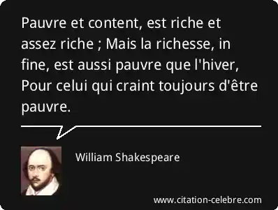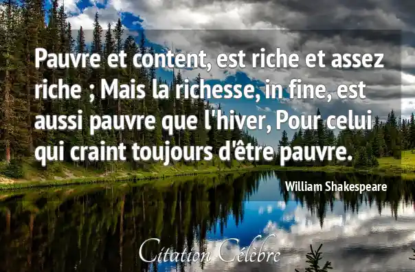 Pauvre et content, est riche et assez riche ; Mais la richesse, in fine, est aussi pauvre que l'hiver, Pour celui qui craint toujours d'être pauvre.