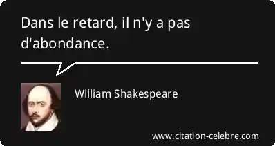 Citation William Shakespeare retard : Dans le retard, il n'y a pas d'abondance....