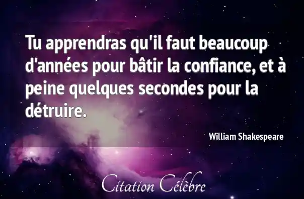 Citation William Shakespeare confiance : Tu apprendras qu'il faut beaucoup d'années pour bâtir la confiance,...