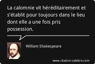 La calomnie vit héréditairement et s'établit pour toujours dans le lieu dont elle a une fois pris possession.