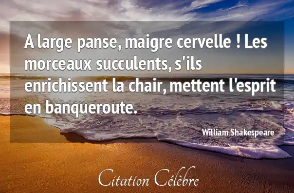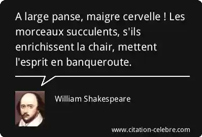 A large panse, maigre cervelle ! Les morceaux succulents, s'ils enrichissent la chair, mettent l'esprit en banqueroute.