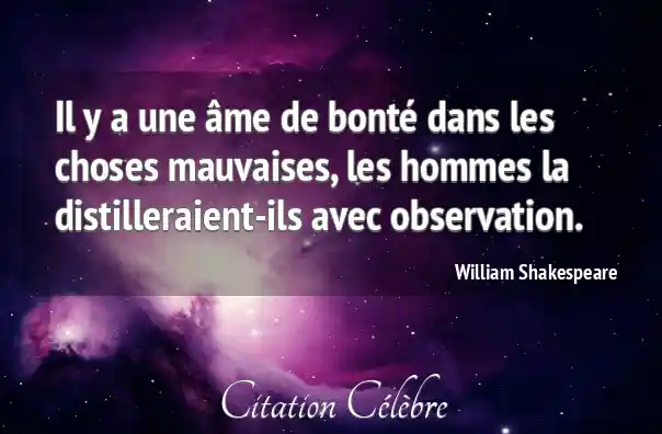 Il y a une âme de bonté dans les choses mauvaises, les hommes la distilleraient-ils avec observation.