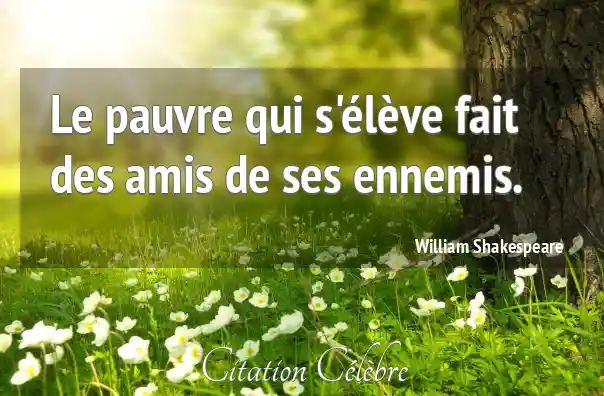 Le pauvre qui s'élève fait des amis de ses ennemis.