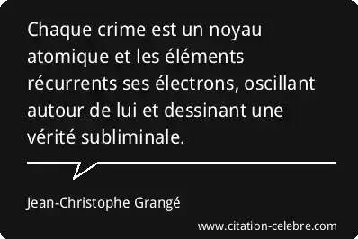 Chaque crime est un noyau atomique et les éléments récurrents ses électrons, oscillant autour de lui et dessinant une vérité subliminale.