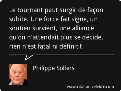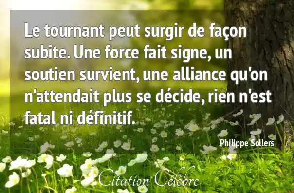 Le tournant peut surgir de façon subite. Une force fait signe, un soutien survient, une alliance qu'on n'attendait plus se décide, rien n'est fatal ni définitif.