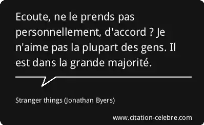 Ecoute, ne le prends pas personnellement, d'accord ? Je n'aime pas la plupart des gens. Il est dans la grande majorité.