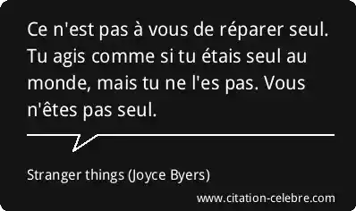 Ce n'est pas à vous de réparer seul. Tu agis comme si tu étais seul au monde, mais tu ne l'es pas. Vous n'êtes pas seul.