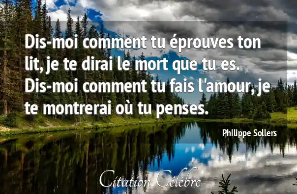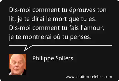 Dis-moi comment tu éprouves ton lit, je te dirai le mort que tu es. Dis-moi comment tu fais l'amour, je te montrerai où tu penses.