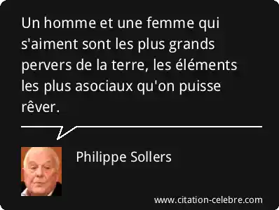 Un homme et une femme qui s'aiment sont les plus grands pervers de la terre, les éléments les plus asociaux qu'on puisse rêver.