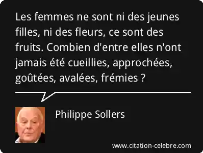 Les femmes ne sont ni des jeunes filles, ni des fleurs, ce sont des fruits. Combien d'entre elles n'ont jamais été cueillies, approchées, goûtées, avalées, frémies ?