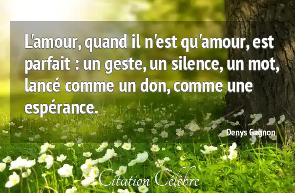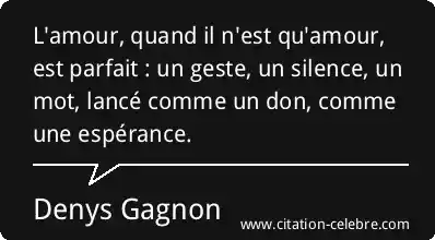 L'amour, quand il n'est qu'amour, est parfait : un geste, un silence, un mot, lancé comme un don, comme une espérance.