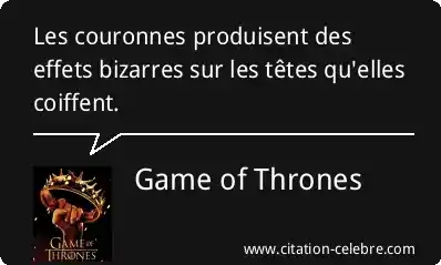 Citation  Game of Thrones elles : Les couronnes produisent des effets bizarres sur les têtes qu'elles... (Tyrion Lannister - film & série)