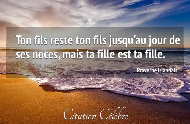 Ton fils reste ton fils jusqu'au jour de ses noces, mais ta fille est ta fille.