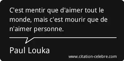 C'est mentir que d'aimer tout le monde, mais c'est mourir que de n'aimer personne.