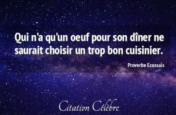 Qui n'a qu'un oeuf pour son dîner ne saurait choisir un trop bon cuisinier.