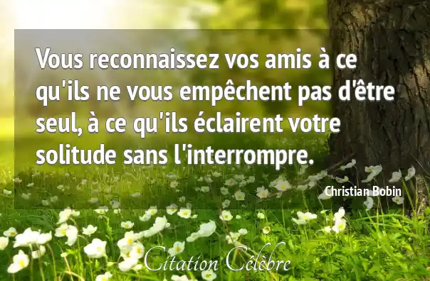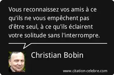 Vous reconnaissez vos amis à ce qu'ils ne vous empêchent pas d'être seul, à ce qu'ils éclairent votre solitude sans l'interrompre.